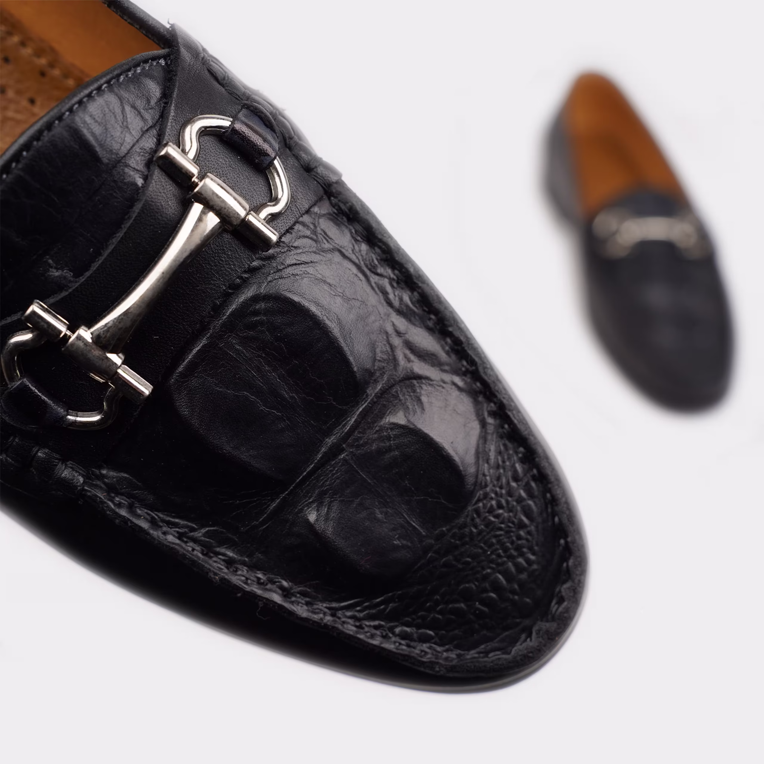 Giày Horsebit Loafer với họa tiết cá sấu là biểu tượng của sự sang trọng và độ đẳng cấp. Thiết kế mang lại vẻ ngoại hình độc đáo và sang trọng với các đường vảy tự nhiên. Họa tiết cá sấu không chỉ làm tăng tính thẩm mỹ mà còn tạo điểm nhấn quý phái cho đôi giày. Sự kết hợp giữa họa tiết cá sấu và dây ngựa mạ vàng truyền thống của Horsebit Loafer tạo ra một sản phẩm thời trang độc đáo và lôi cuốn.